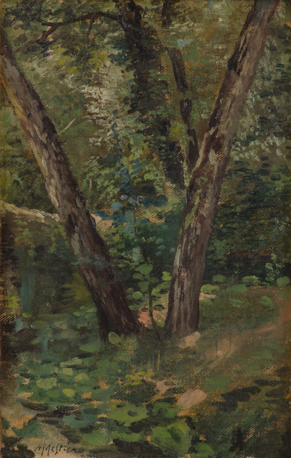 AMESTICA OLIO su tela "bosco", firmato in basso a sinistra. XX secolo Misure: cm 34 x 22