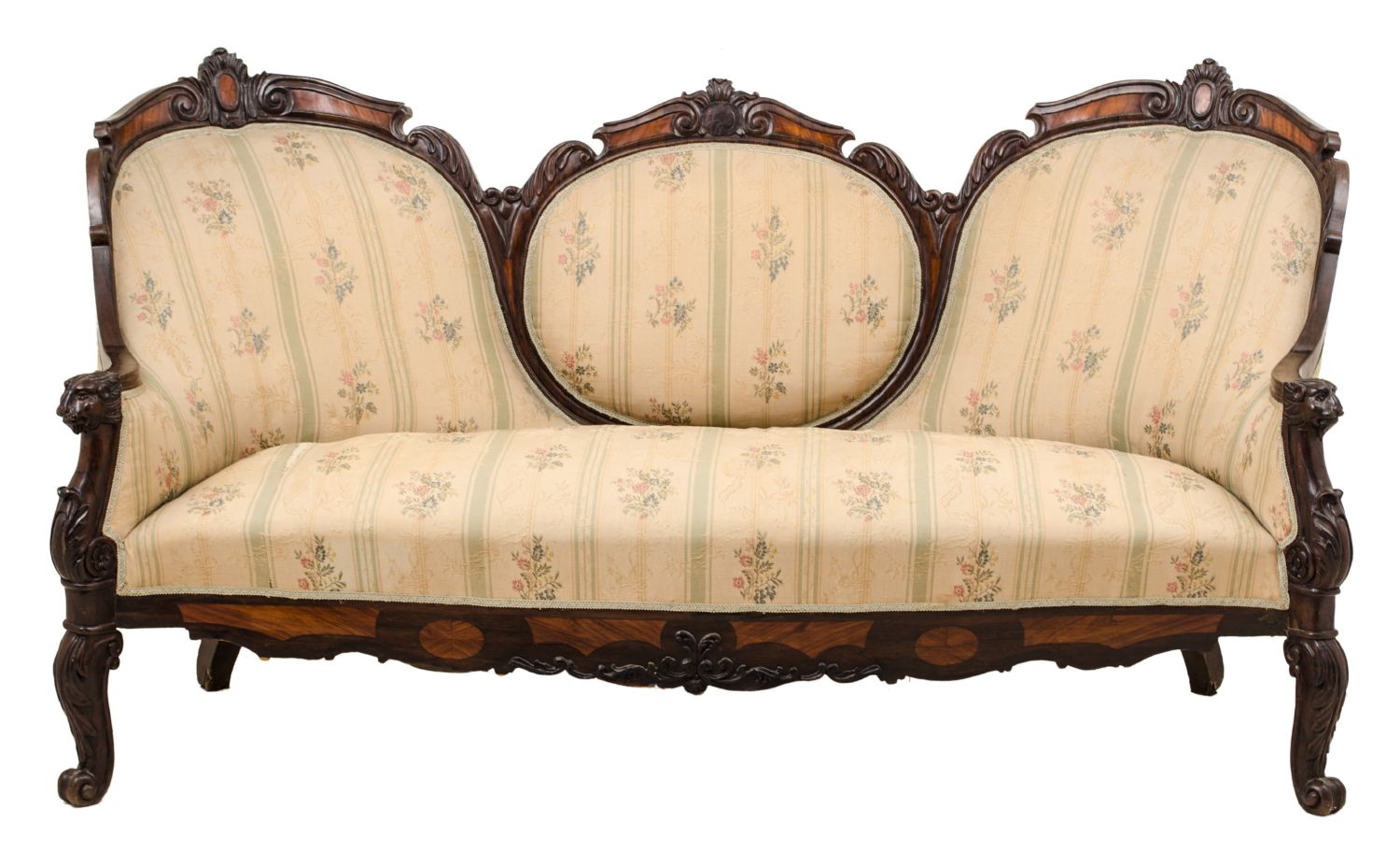 DIVANO Luigi Filippo in palissandro e legno di rosa (usure). Sicilia XIX...