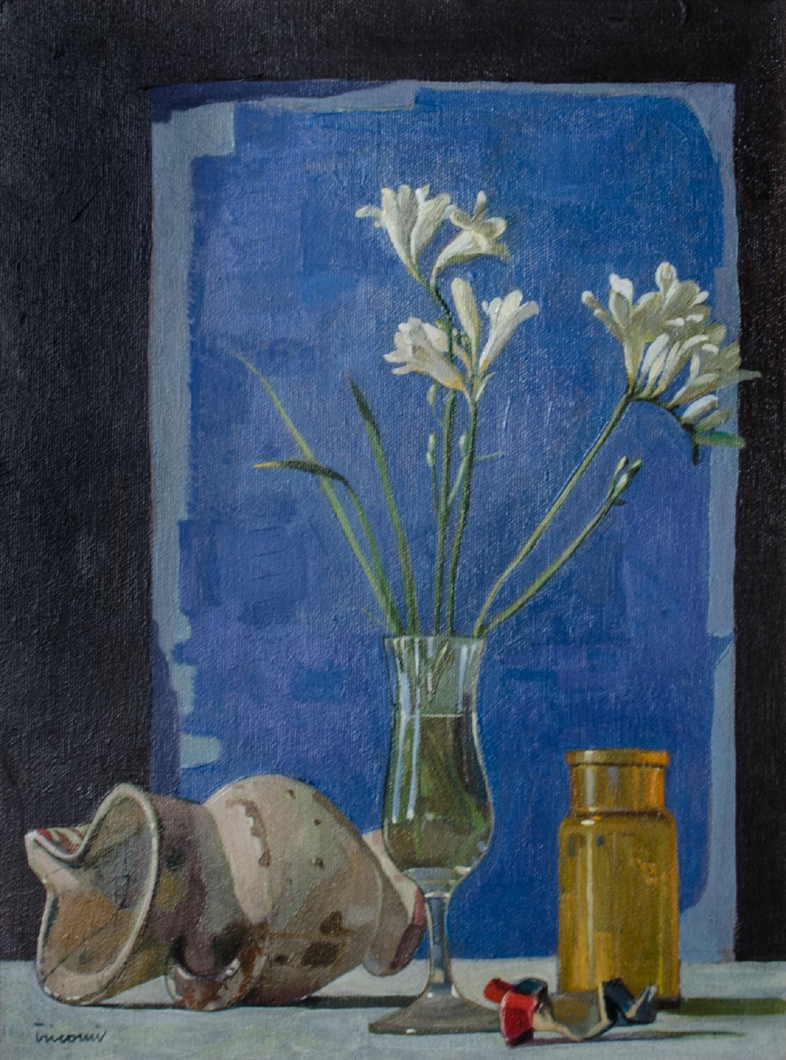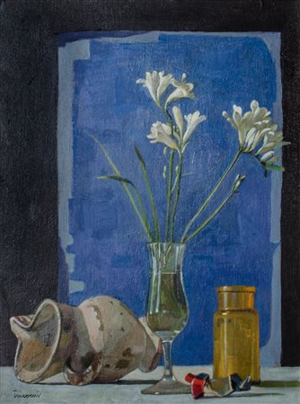 SARO TRICOMI (Catania 1937) OLIO su tela "fresie bianche", firmato in basso a sinistra. Datato 2012 Misure: cm 40 x 30