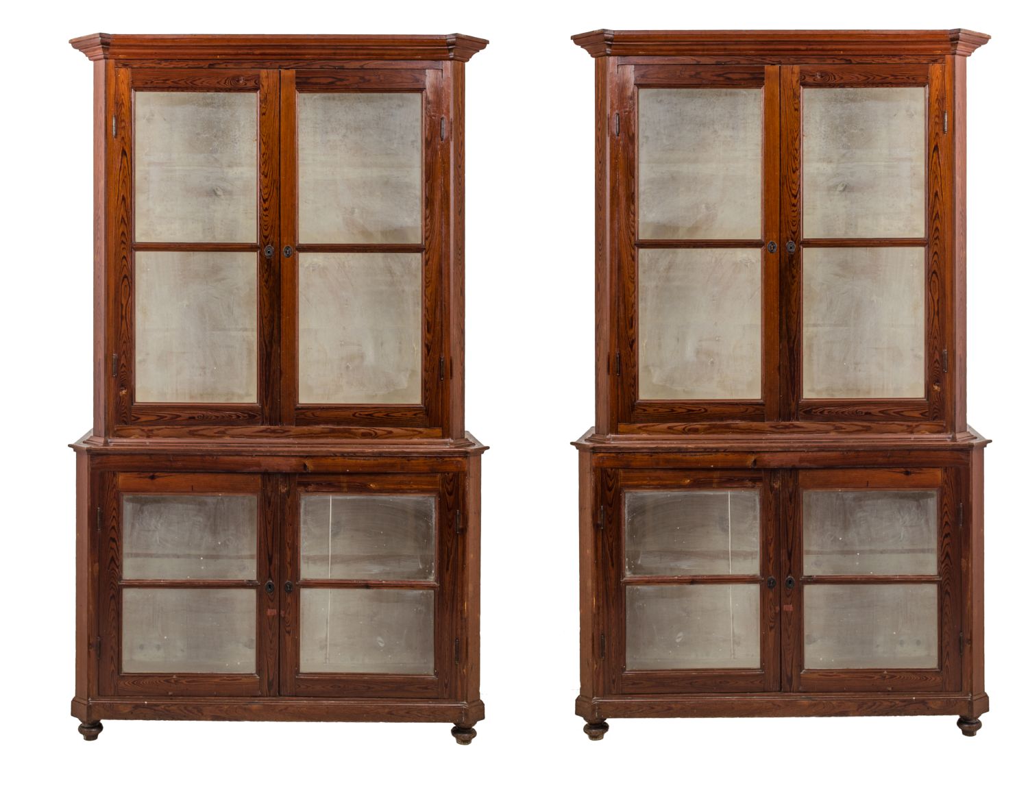COPPIA VETRINE doppio corpo a due ante in pino pece. Sicilia XIX secolo Misure: cm 132 x 45 x h 219