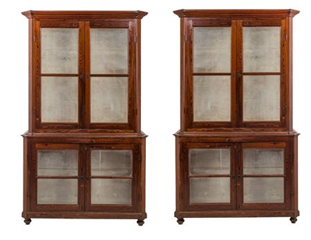 COPPIA VETRINE doppio corpo a due ante in pino pece. Sicilia XIX secolo...