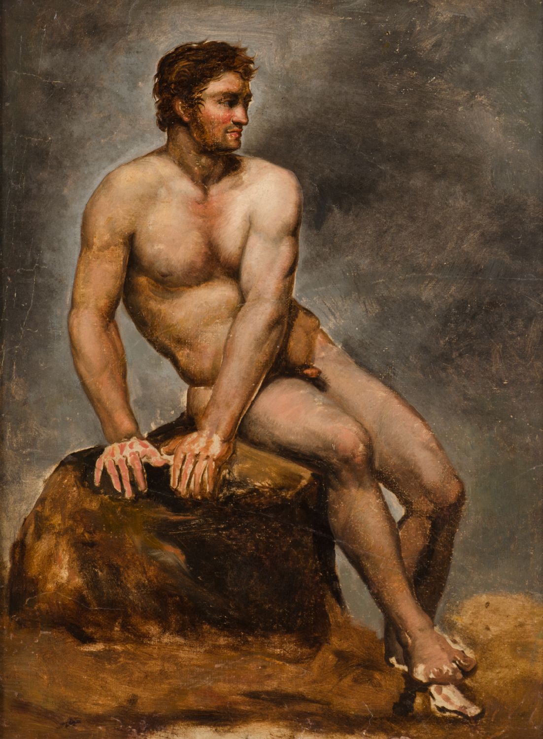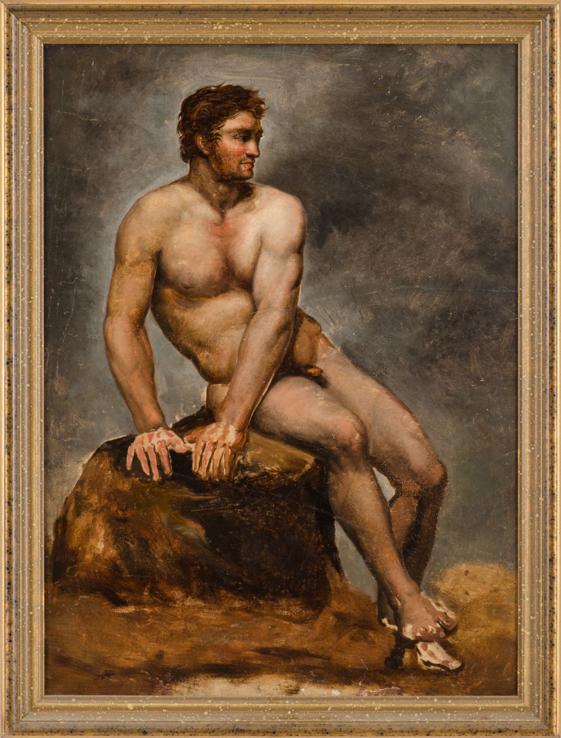 SALVATORE LO FORTE (Palermo 1809 - 1885) OLIO su carta applicato su tela "studio di nudo virile seduto",(pubblicato nel volume "Ottocento Siciliano" edito da Electa Napoli a pag. 131). Misure: cm 58 x 42