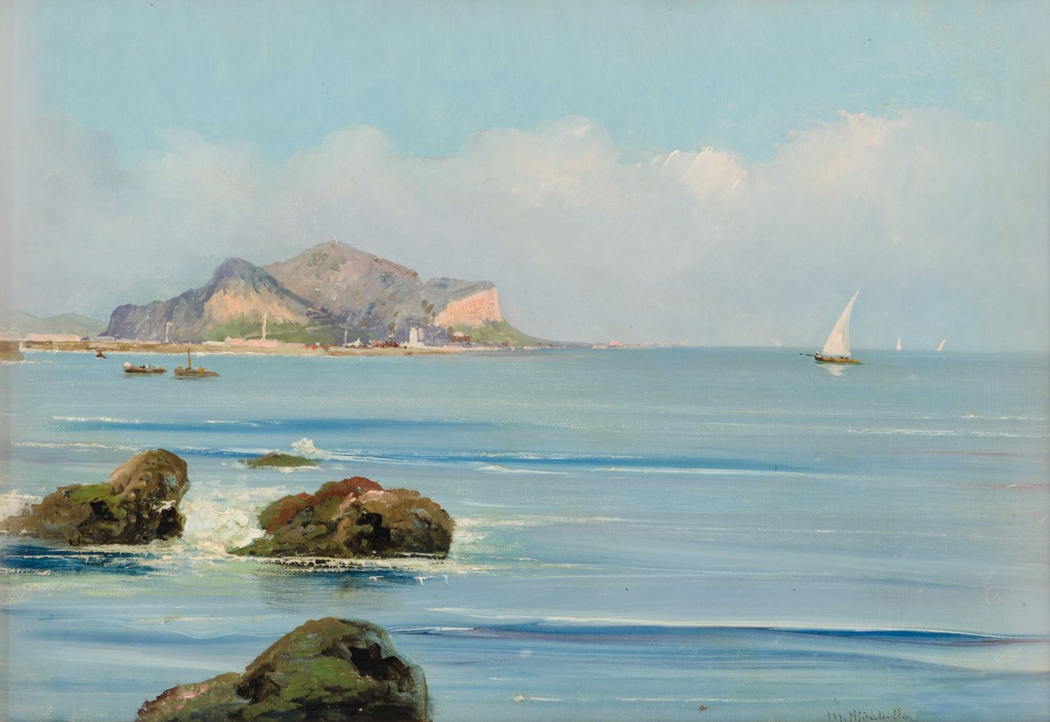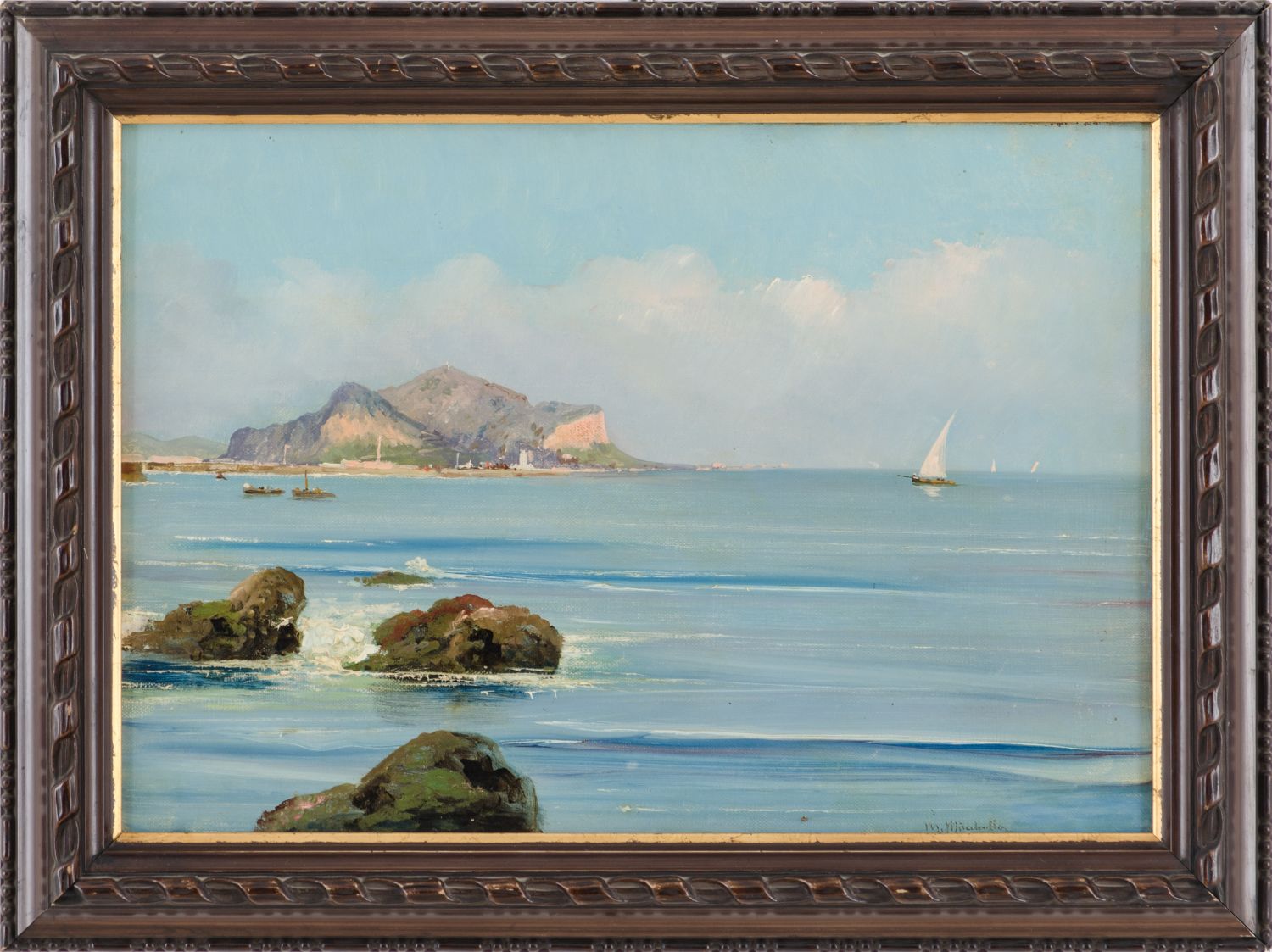 MARIO MIRABELLA (Palermo 1870 - 1931) OLIO su tela "Monte Pellegrino visto...