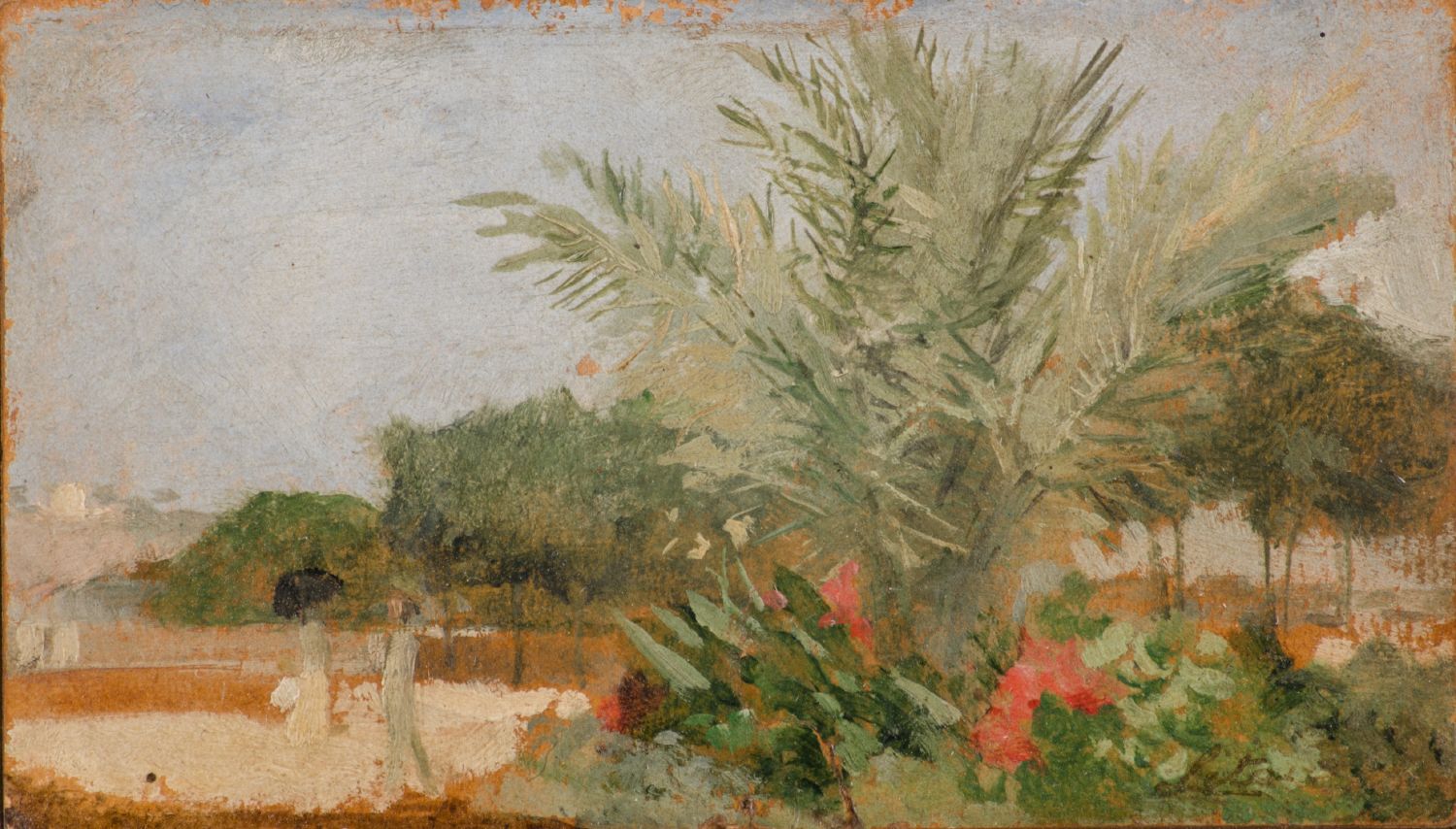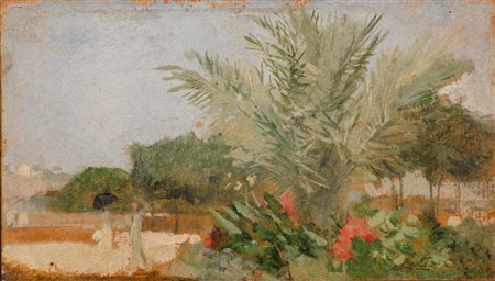 ANTONINO LETO (Monreale (PA) 1844 – Capri (NA) 1913) OLIO su tavola "la palma", firmato in basso a destra (pubblicato nel volume "Ottocento Siciliano" edito da Electa Napoli a pag. 119). Misure: cm 6,5 x 11,5