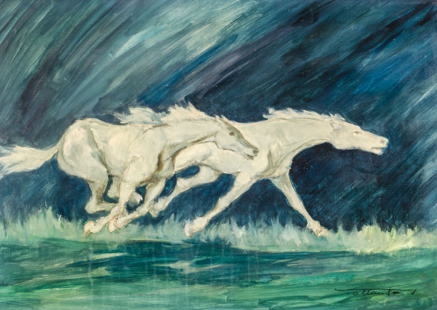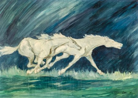 VINCENZO TALLARITA OLIO su tavola "cavalli", firmato in basso a destra. XX secolo Misure: cm 50 x 70