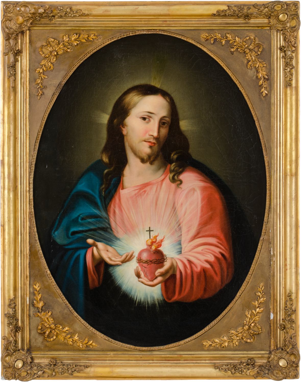 OLIO su tela "Sacro Cuore di Cristo" entro cornice coeva. Francia XIX secolo Misure: cm 75 x 99