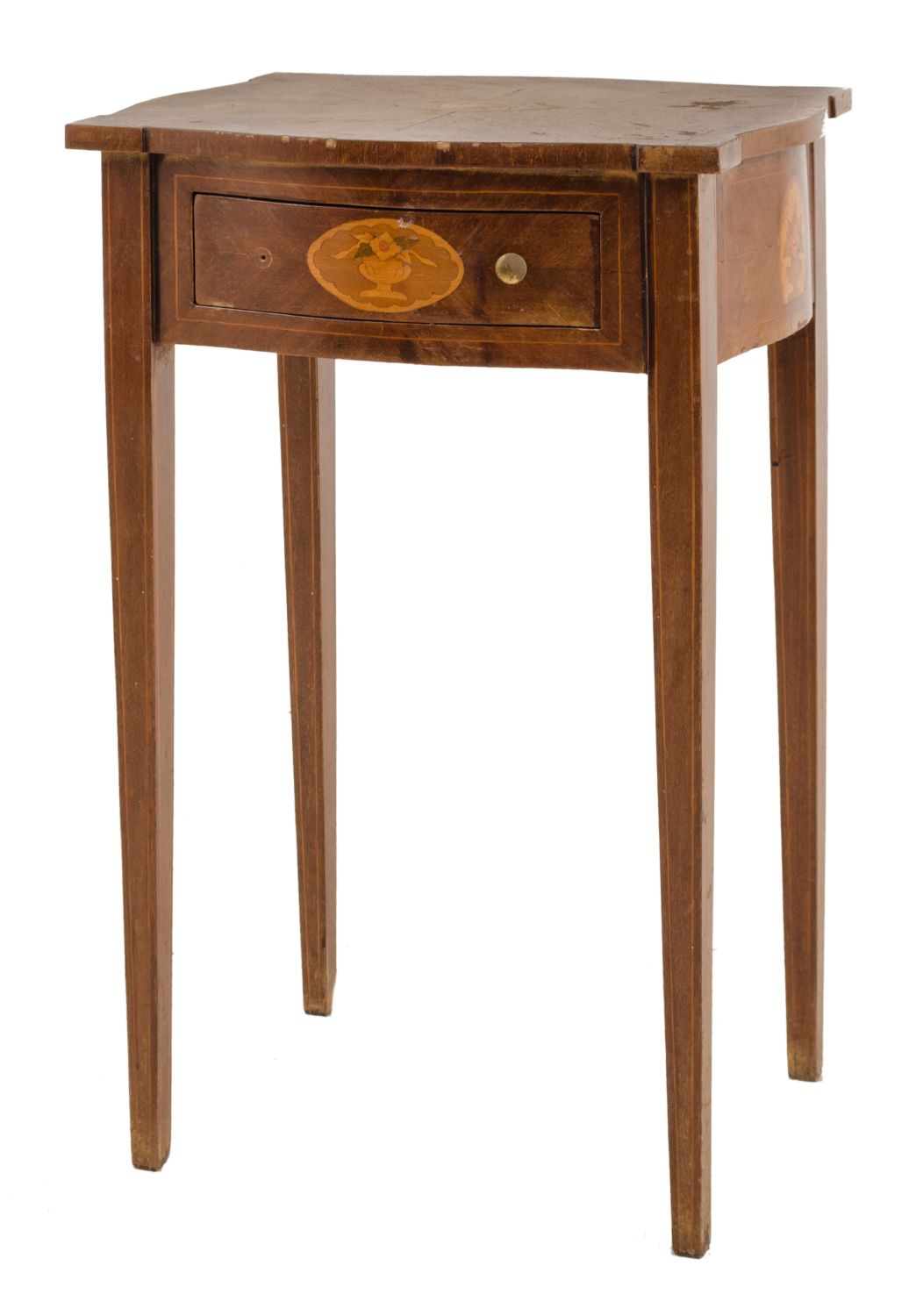 TAVOLINO con cassetto in mogano e tarsie in bosso. Italia XX secolo Misure: cm 43,5 x 35 x h 65
