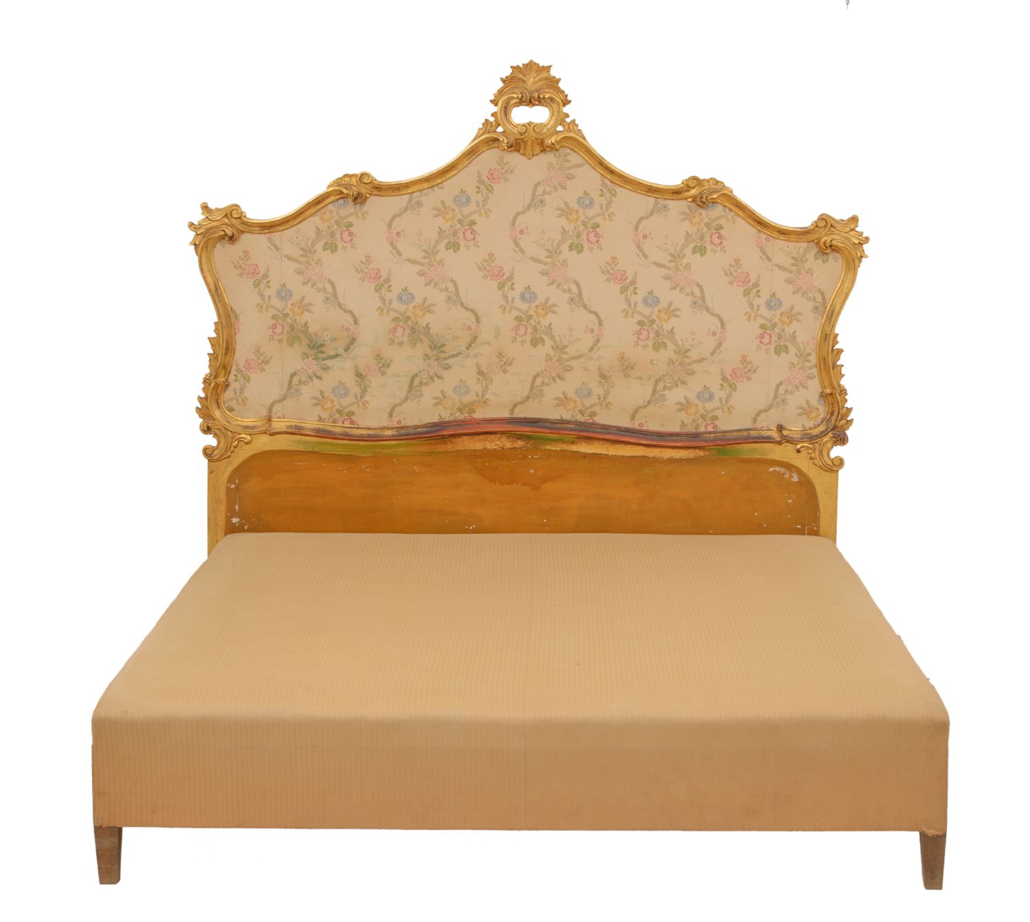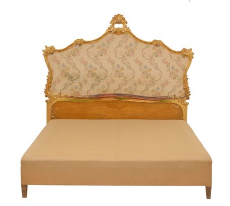 STANZA da letto stile Luigi XV composta da SPALLIERA in legno dorato,...