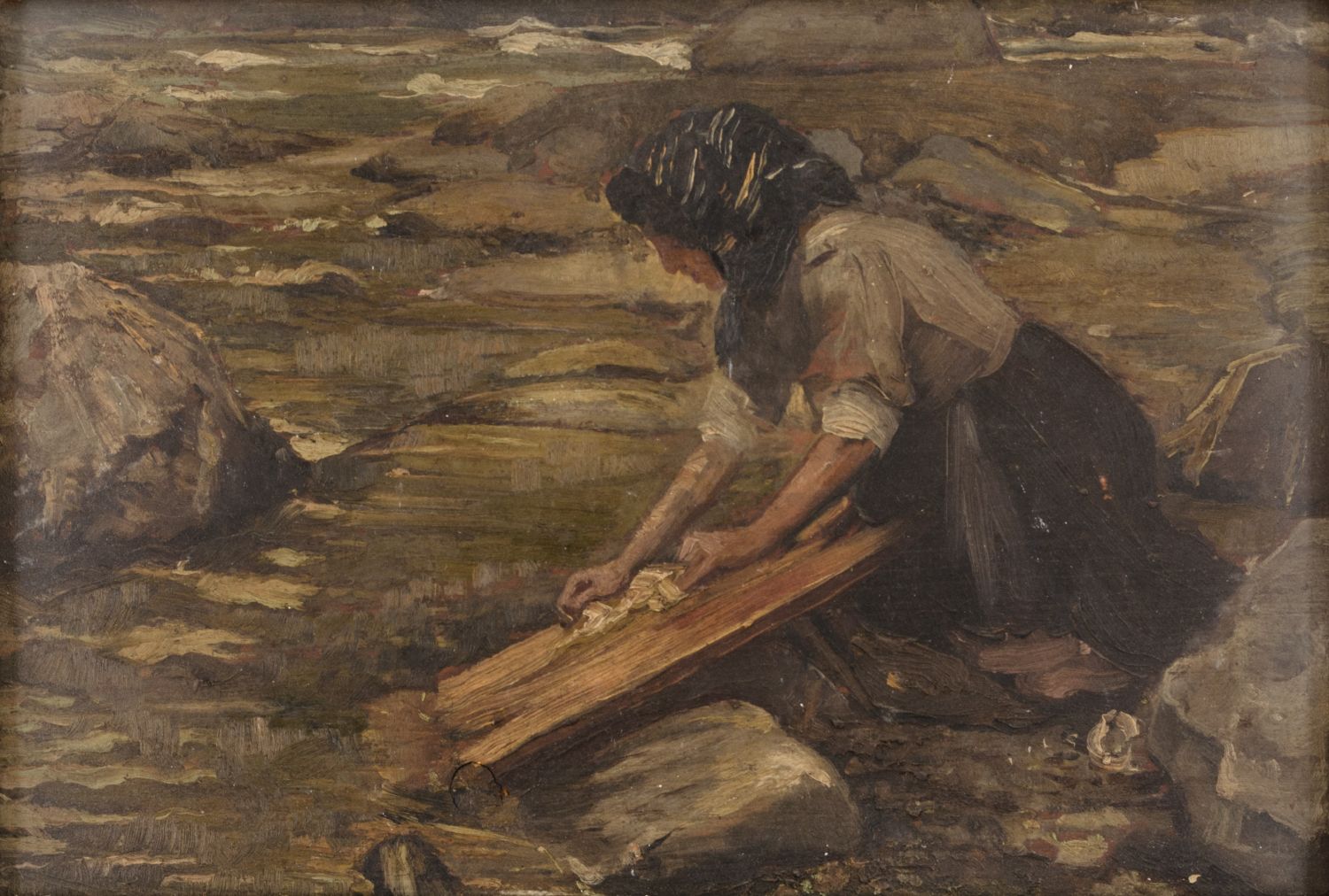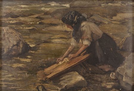 OLIO su tavoletta "lavandaia". Primi '900 Misure: cm 23 x 34