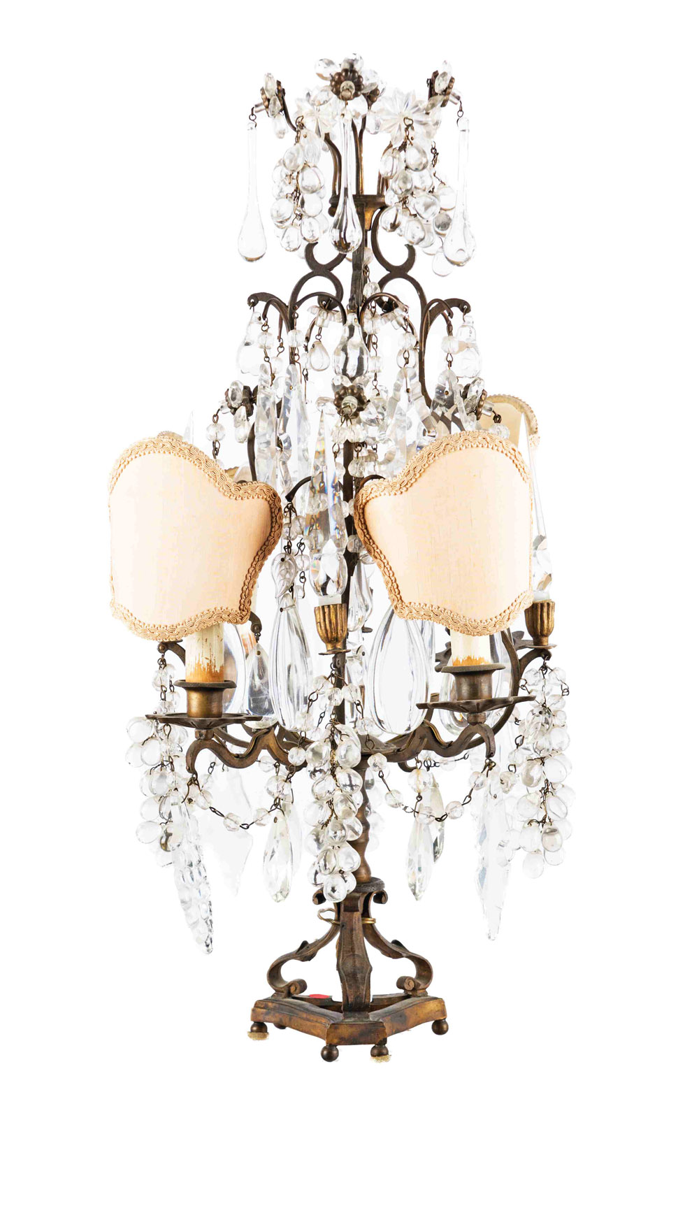 Coppia di Flambeaux in cristallo e metallo dorato del XIX secolo a quattro...