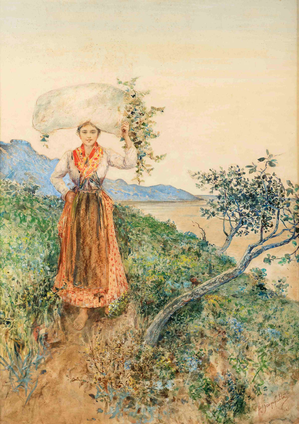 Pietro Scoppetta Am alfi 1863-Napoli 1920 Contadina Firmato in basso a destra Acquerello su carta Misure cm 55 x 40