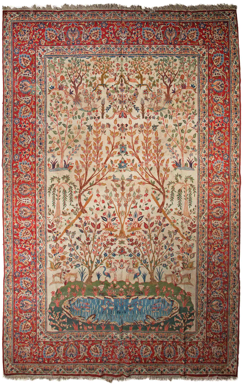 Tappeto Isfahan “Albero della Vita” fondo beige con i toni del rosso e del...