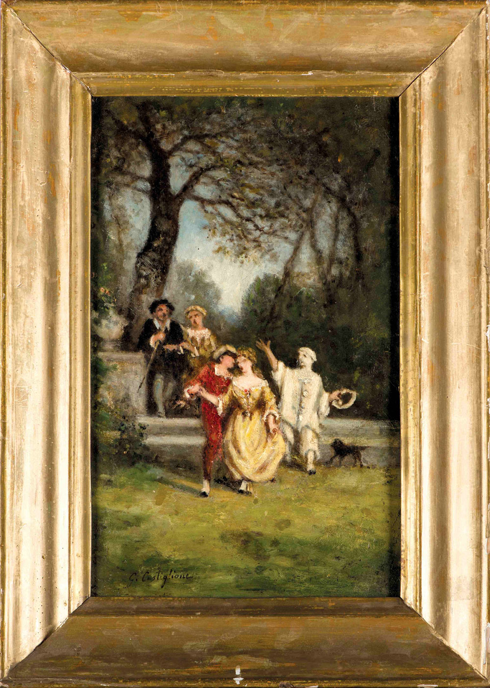 Giuseppe Castiglione Napoli 1829-Napoli Festa in giardino Firmato in basso a sinistra Olio su tavola. Misure cm 41 x 26