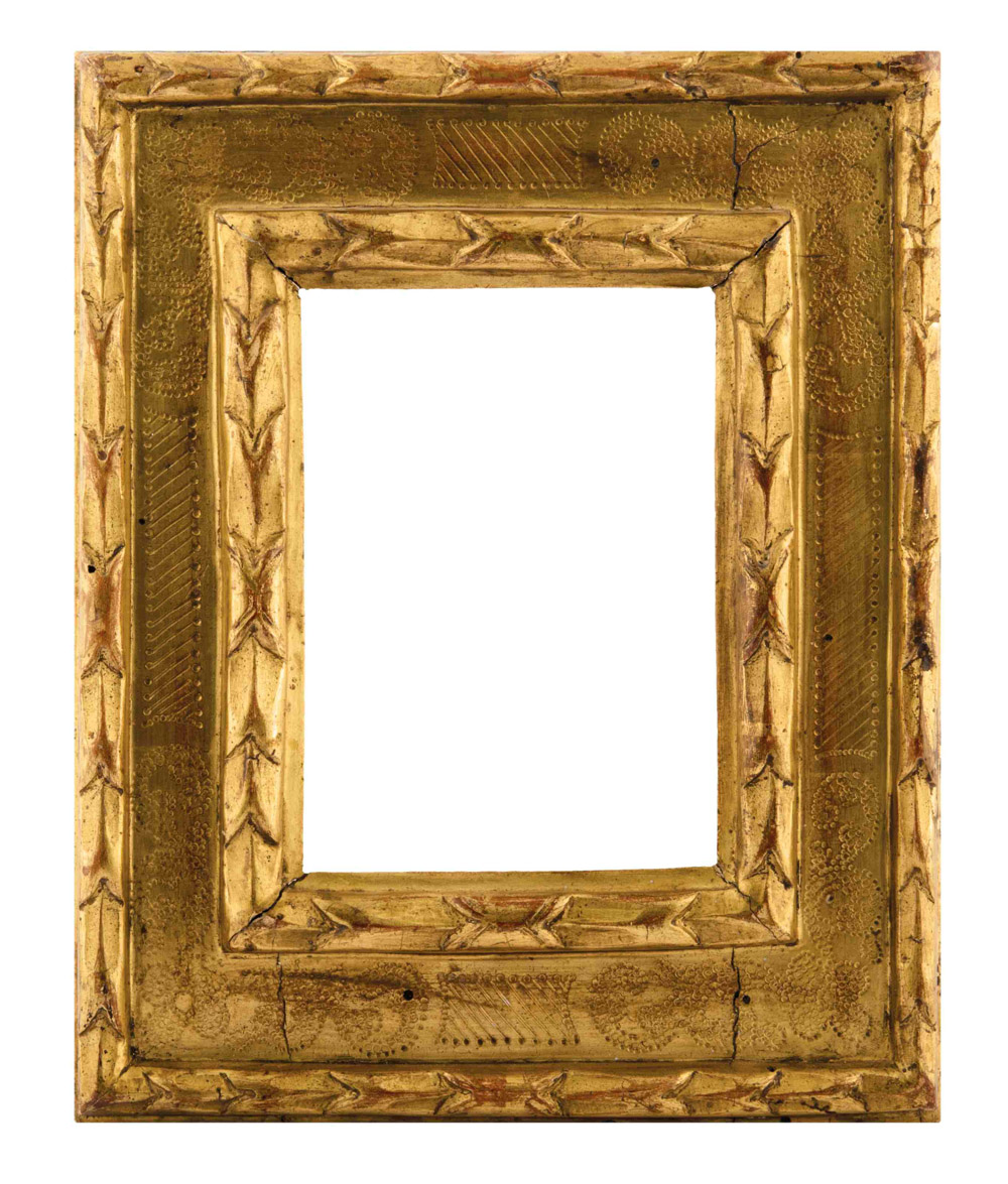 Piccola cornice a cassetta Emilia primo quarto XVII secolo con decorazioni bulinate Misure cm 23.5 x 19, 14.5 x 10