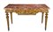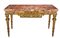 Due ConsoleS in legno intagliato e dorato a mecca, Italia centrale ultimo quarto del XVIII secolo Una con fascia decorata a motivo vegetale, altra con fascia decorata a motivo vegetale centrata da draghi stilizzati,, gambe troncoconiche scanalate, piano listrato in marmo fior di pesco. Difetti.