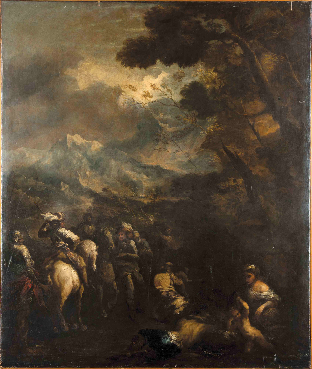 Antonio Maria Marini Venezia 1668-Venezia 1725 Paesaggio con Cavalieri Olio su tela. Misure cm 115 x 97