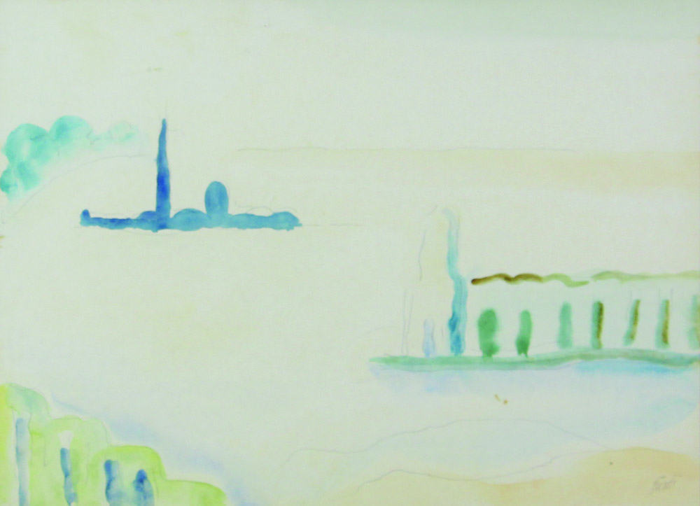 Virgilio Guidi, L'Isola di San Giorgio, acquerello su carta intelata, cm....