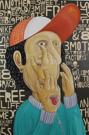 Mot8, Hi, Bob, 2010, acrilico su tela, cm. 150x100, firmato in basso al centro