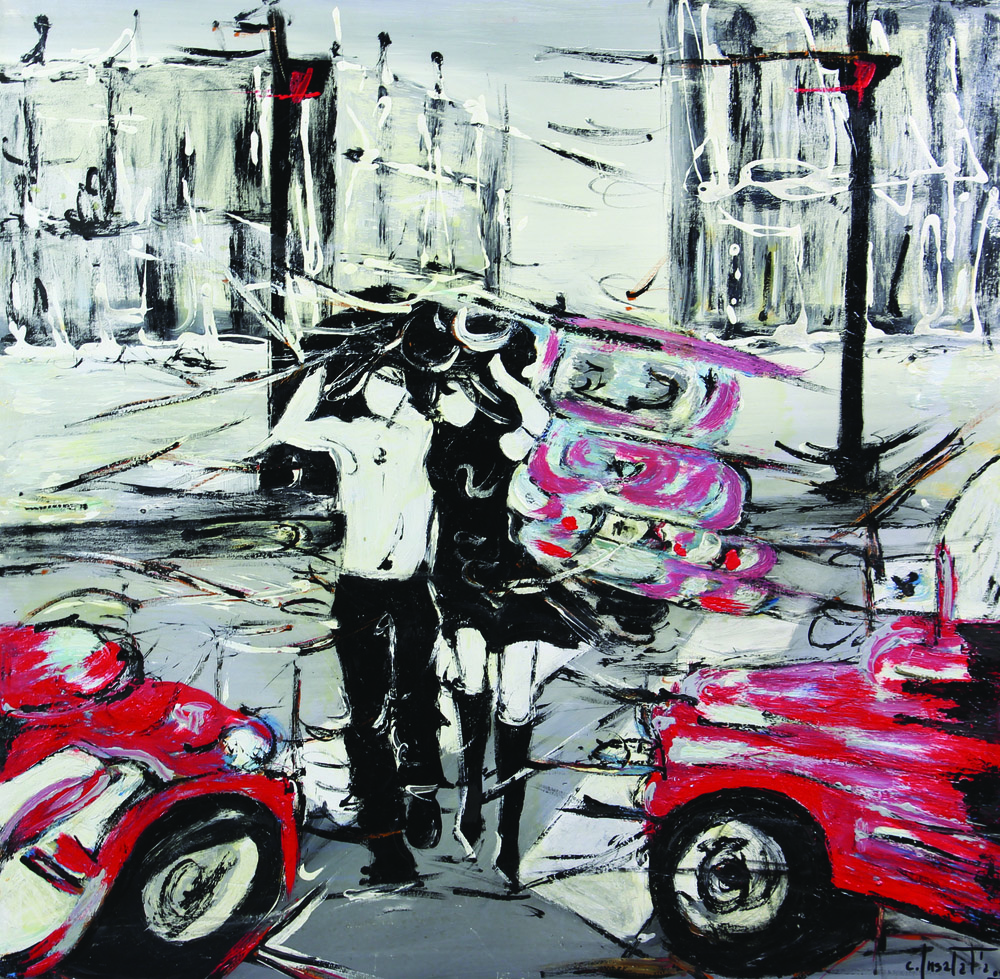 Carla Insalata, Il Traffico Urbano, 2004, olio e acrilico su tela, cm. 65x65,...