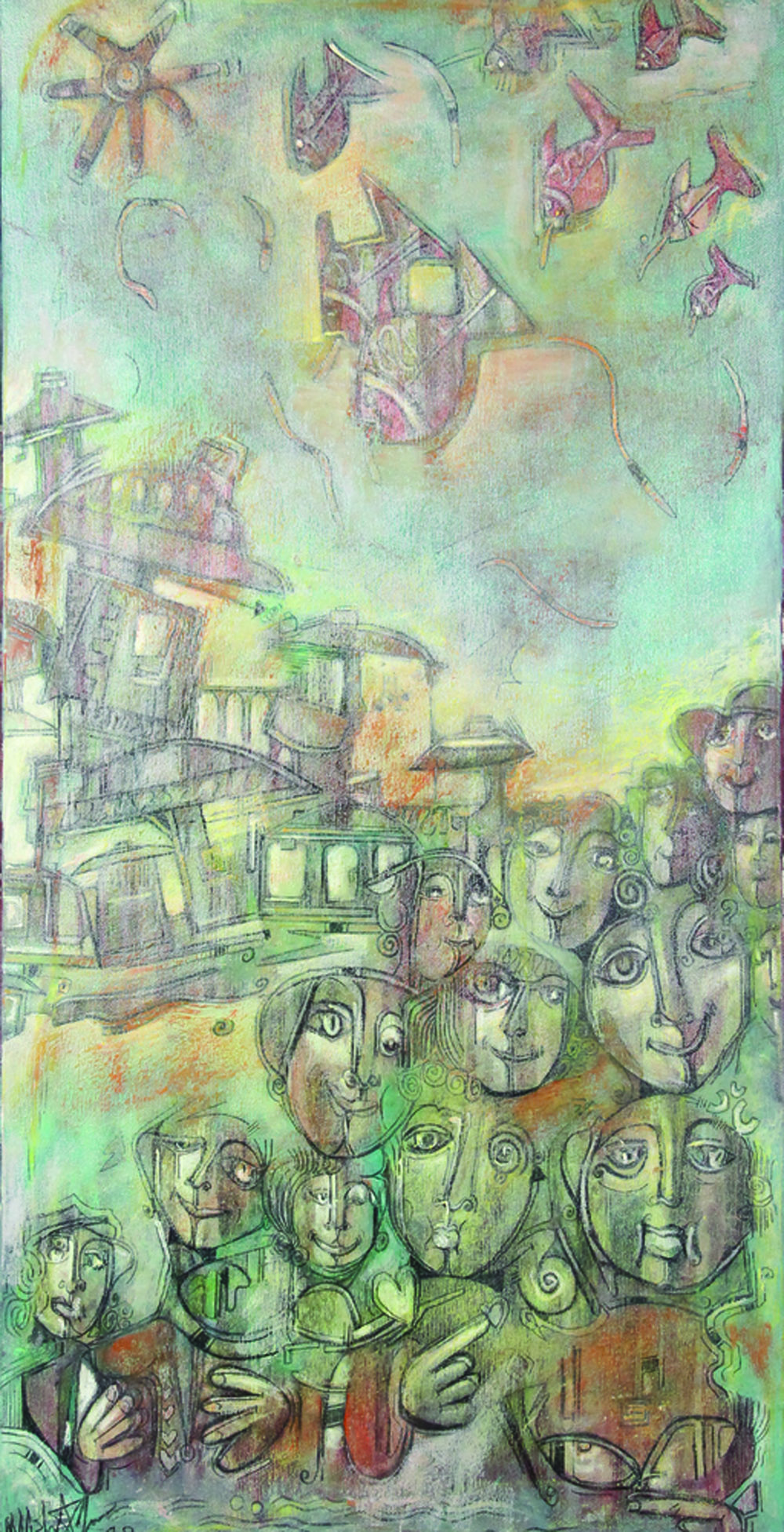 Martino Delego, La Folli Ebete..., 1992, tecnica mista su tela, cm. 80x40,...