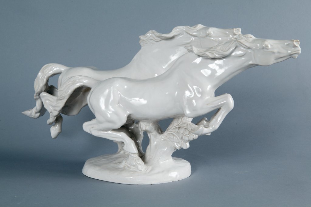 ZACCAGNINI (Editore)"Cavalli al galoppo", anni '60. Scultura in ceramica,...