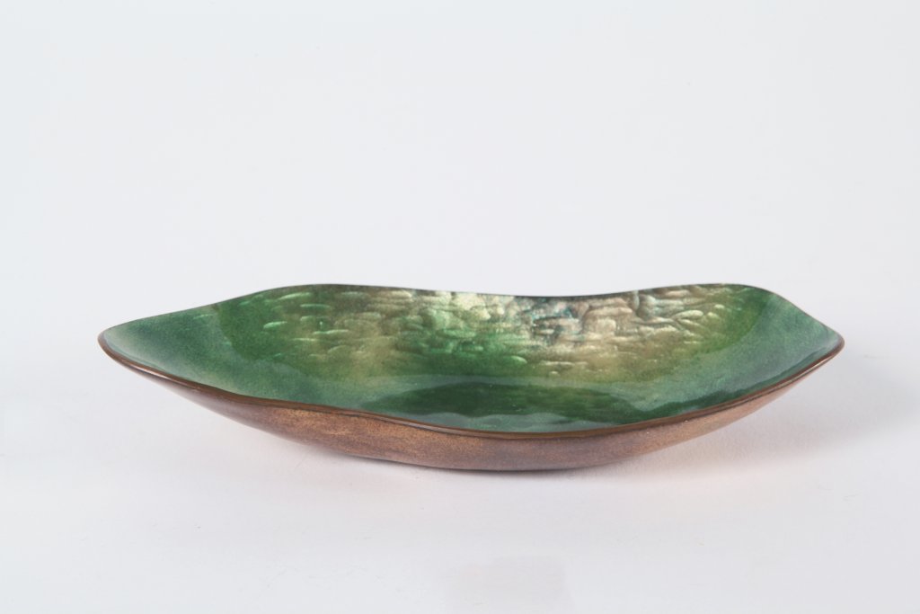 Rame martellato e smaltato.