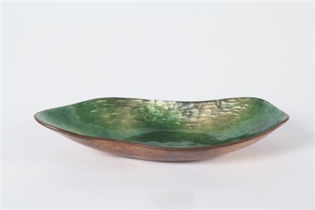 PAOLO DE POLI Una coppa, primi anni '70. Rame martellato e smaltato. Firmata...