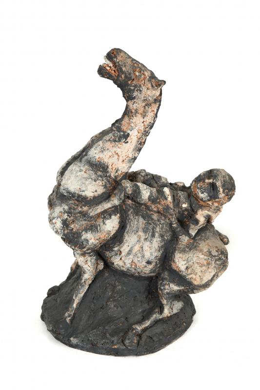 AGENORE FABBRI (1911-1998) Donna a cavallo scultura in terracotta dipinta cm 37x27x17 firmata sul fondo e all'interno