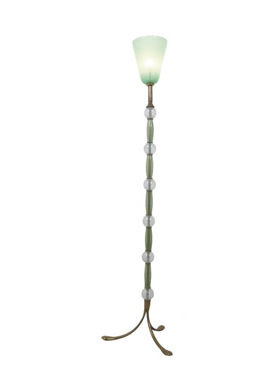 UNA LAMPADA DA TERRA, Murano, anni '30. Ottone, vetro a bollicine. Altezza cm...