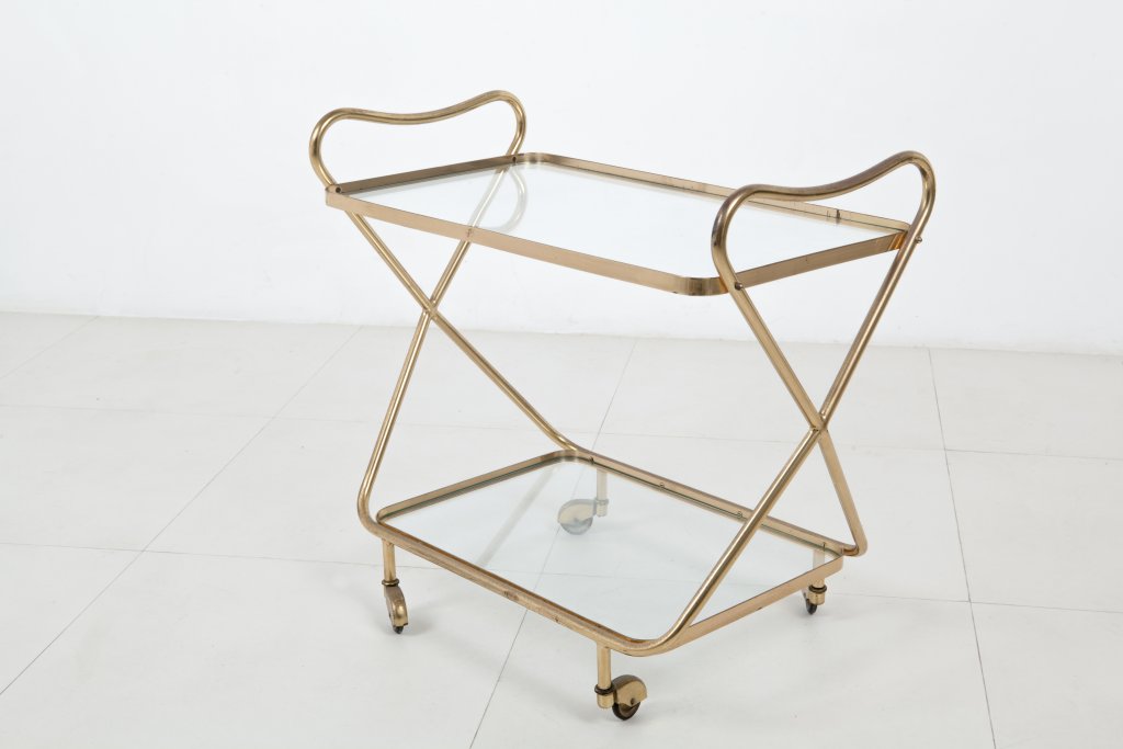 Lot 1218 | UN CARRELLO, anni '50. Ottone, cristallo. Cm 67 (h) x 72 x 40.