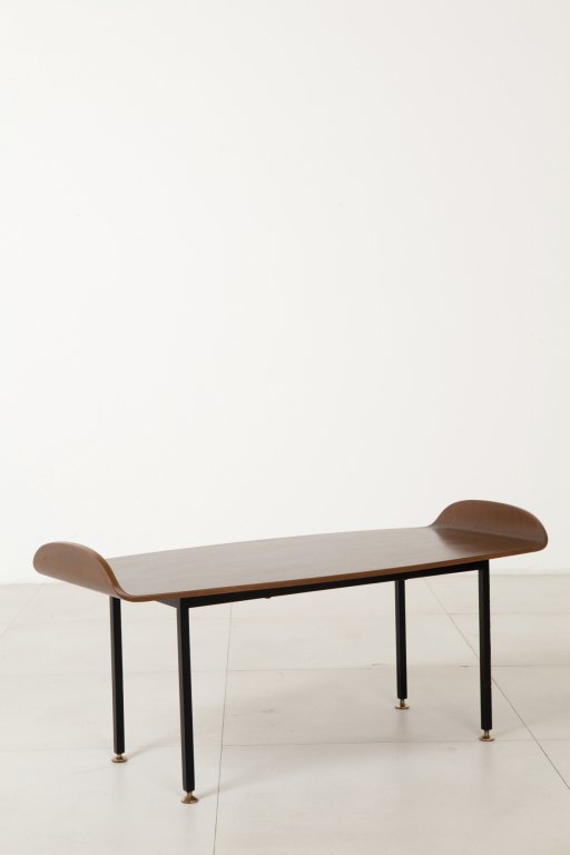 UN TAVOLINO, anni '60. Ferro verniciato, piedini regolabili di ottone,...