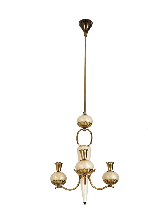 UNA COPPIA DI LAMPADARI, anni '60. Ottone, vetro sommerso con applicazione di...