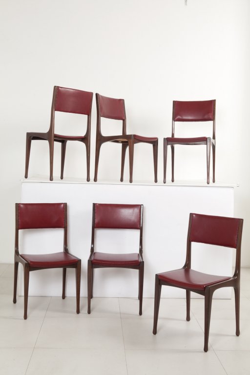 CARLO DE CARLISei sedie "693" per CASSINA, 1959. Legno di noce tinto...