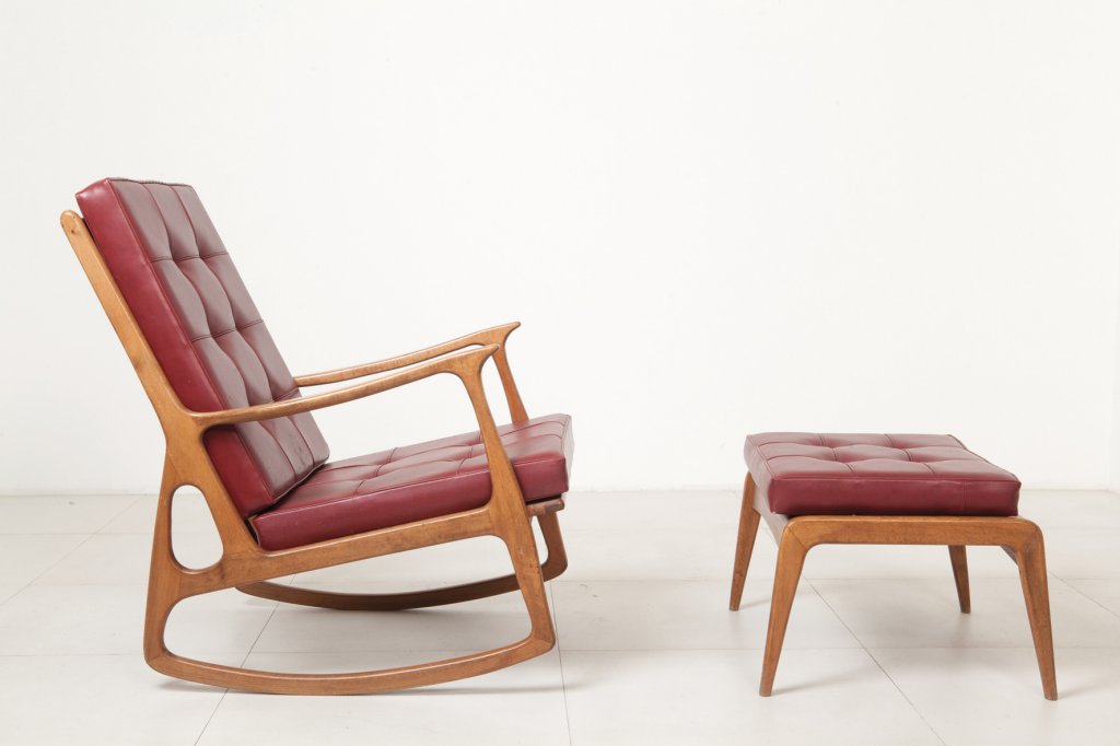 UNA POLTRONA A DONDOLO E UN POGGIAPIEDI, anni '60.