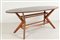 UN TAVOLO, anni '60. Legno di noce, piano in multistrato impiallacciato in...