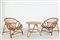 DUE POLTRONCINE E UN TAVOLINO, anni '60. Malacca, canna d'India, piano...