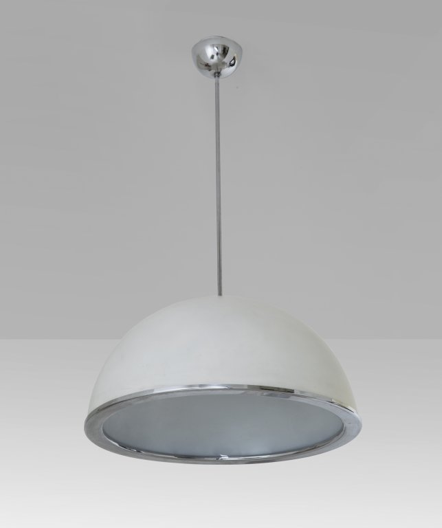 Lacquered chrome-plated metal with opaline glass diffuser.