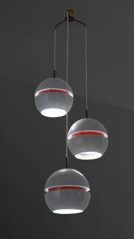 STILNOVO Una lampada a sospensione "1361", circa 1968. Ottone, alluminio...