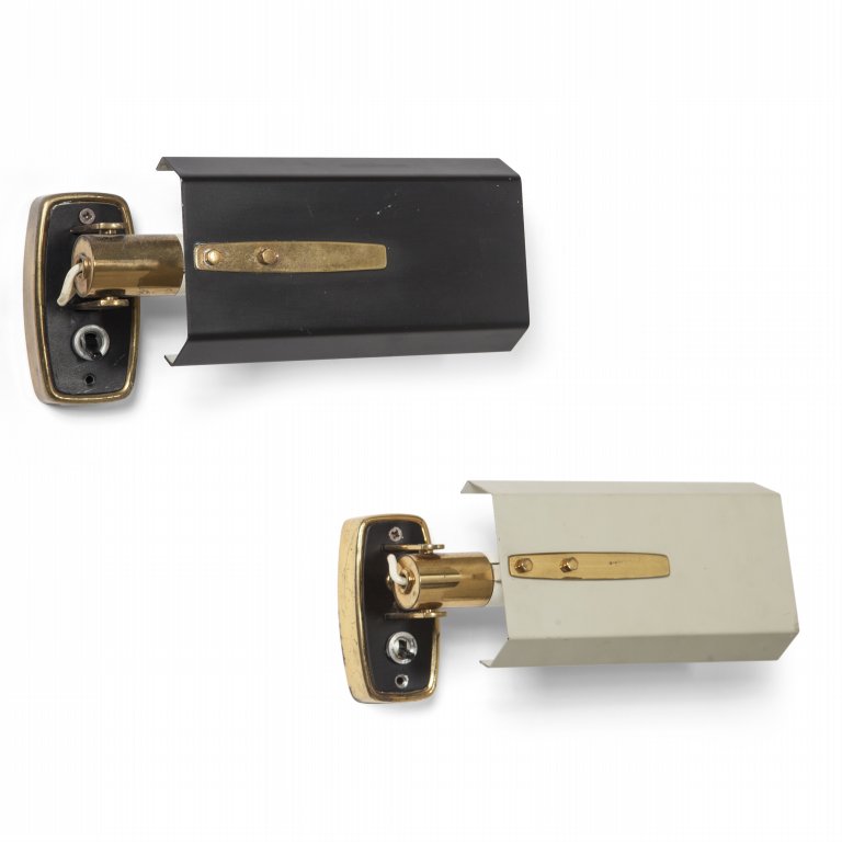 STILNOVO Due lampade a parete "2133", anni '60. Ottone, alluminio laccato....