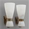 STILNOVO Due lampade a parete "2118", anni '60. Ottone, vetro "Triplex Opal"....