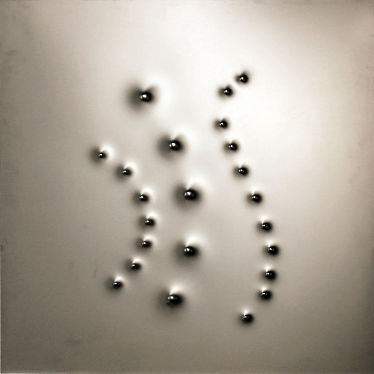 Angelo BRESCIANINI Palazzolo sull'Oglio (Brescia), 1948 BAA023251, N° 23 spari pistola cal. 22 cal. 45 su lastra acciaio inox, cm. 100 x 100, Titolo, tecnica, misure, firma, archivio 'N° 23 spari pistola cal. 22 cal. 45, lastra acc. inox, 100x100, Brescianini Angelo, Arch. N. BAA023251'; #firma incisa 'Brescianini Angelo'; #etichetta Catalogo Ragionato delle opere di Angelo Brescianini; #timbro di Minotauro Fine Art Gallery (al retro) Autentica dell'artista su fotografia rilasciata dal catalogo generale dell'artista con n. di repertorio BAA023251, a cura di A. Falbo
