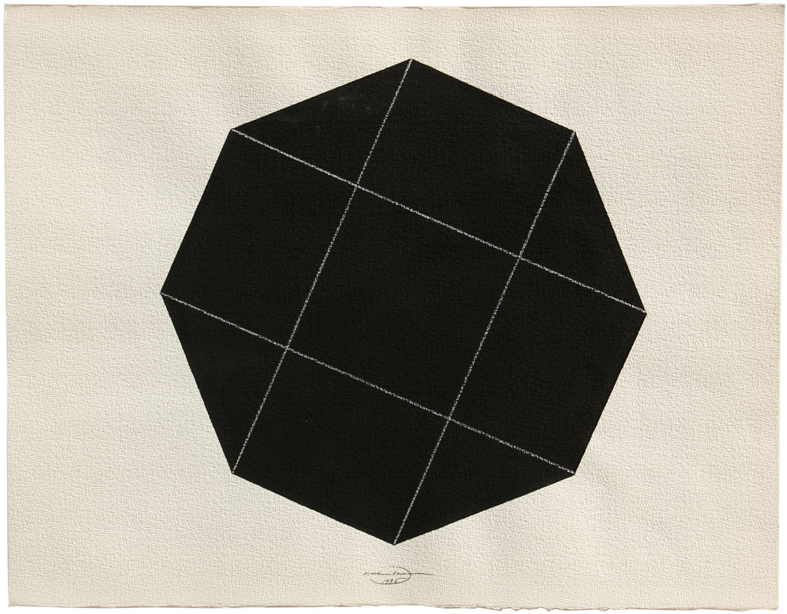 Nicola CARRINO Taranto, 1932 Ottagono, 1986, inchiostro e pennarello su cartoncino, cm. 50 x 65, Firma, data 'Nicola Carrino, 1986' (in basso al centro) #Firma, luogo, titolo, data, firma, misure, tecnica 'Nicola Carrino, Roma, Ottagono, 1986, Nicola Carrino, cm. 50x65, inchiostro e pennarello' (al retro)