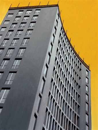 Marco PETRUS Rimini, 1960 Palazzo Montecatini II, 2004, olio su tela, cm. 80 x 60, 'Marco Petrus Milano Milano', Skira, 2004, Firma, data, titolo 'M. Petrus, 2004, Palazzo Montecatini II'; #etichetta della Fondazione Piero Portaluppi; #timbro di Italian Factory (al retro) Autentica dell'artista su fotografia, con timbro di Italian Factory #Fotografia dell'artista con l'opera