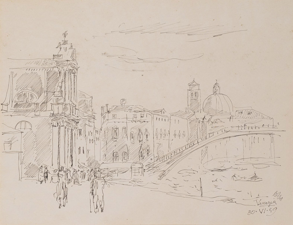 Mario Vellani Marchi (Modena 1895 - Milano 1979) "Venezia" china su carta (cm 23x29.5) Firmato e datato in basso a destra Siglato, locato e datato 30.9.'59 in basso a destra (Difetti) In cornice