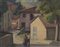 Marius Ledda (Cagliari 1880 - Roma 1965) "Vicolo di paese con figure" olio su cartone (cm 47.5x60.5) Firmato in basso a destra In cornice