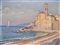 Marius Ledda (Cagliari 1880 - Roma 1965) "Paesaggio costiero con chiesa e barca a vela. Camogli"