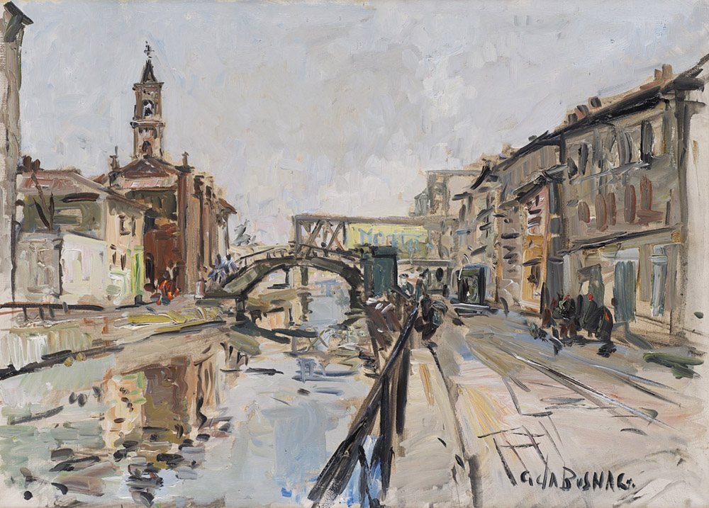 Giovanni Colombo da Busnago (Busnago 1908 - Gaggiano 1972) "Milano, scorcio...