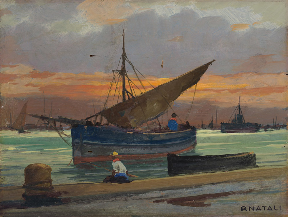 Lot 50 | Renato Natali (Livorno 1883 - 1979) "Sera al porto" olio su compensato (cm...