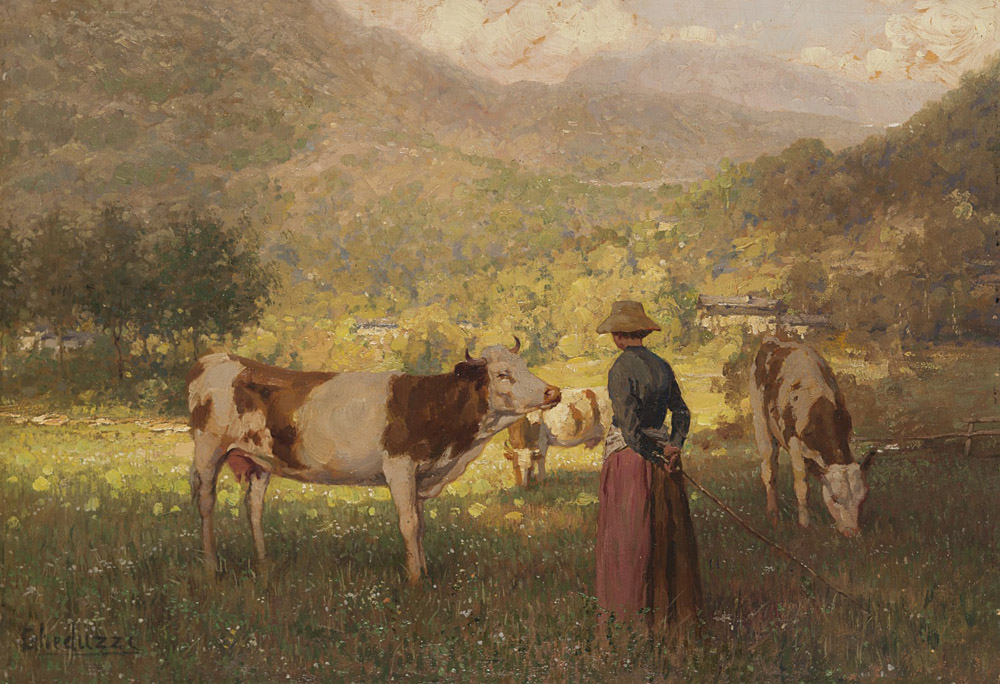 Giuseppe Gheduzzi (Crespellano 1889 - Torino 1957) "Pastorella" olio su cartone pressato (cm 38x56) Firmato in basso a sinistra In cornice