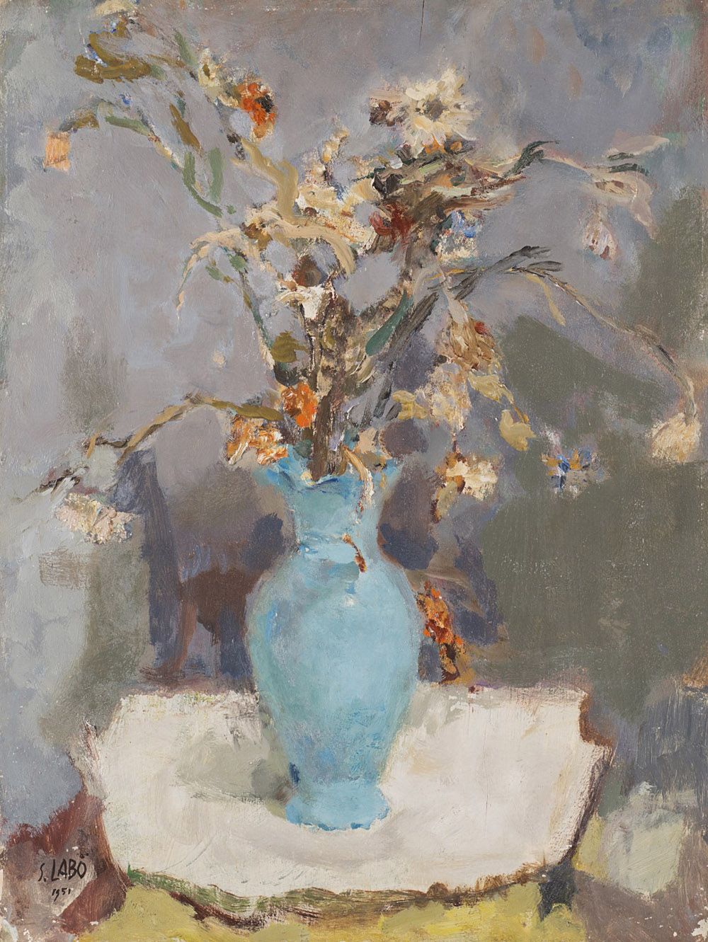 Savinio Labò (Milano 1899 - 1976) "Vaso di fiori" 1951 olio su compensato (cm 39.8x29.7) Firmato e datato in basso a sinistra Al retro: firmato In cornice